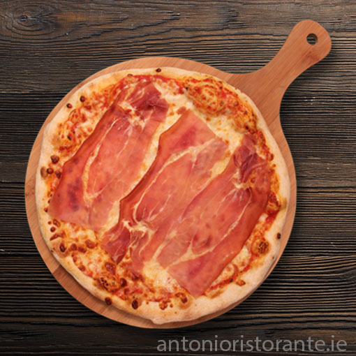 Half-moon folded pizza filled mozzarella cheese, ham and mushrooms topped with a dash of tomato sauce.